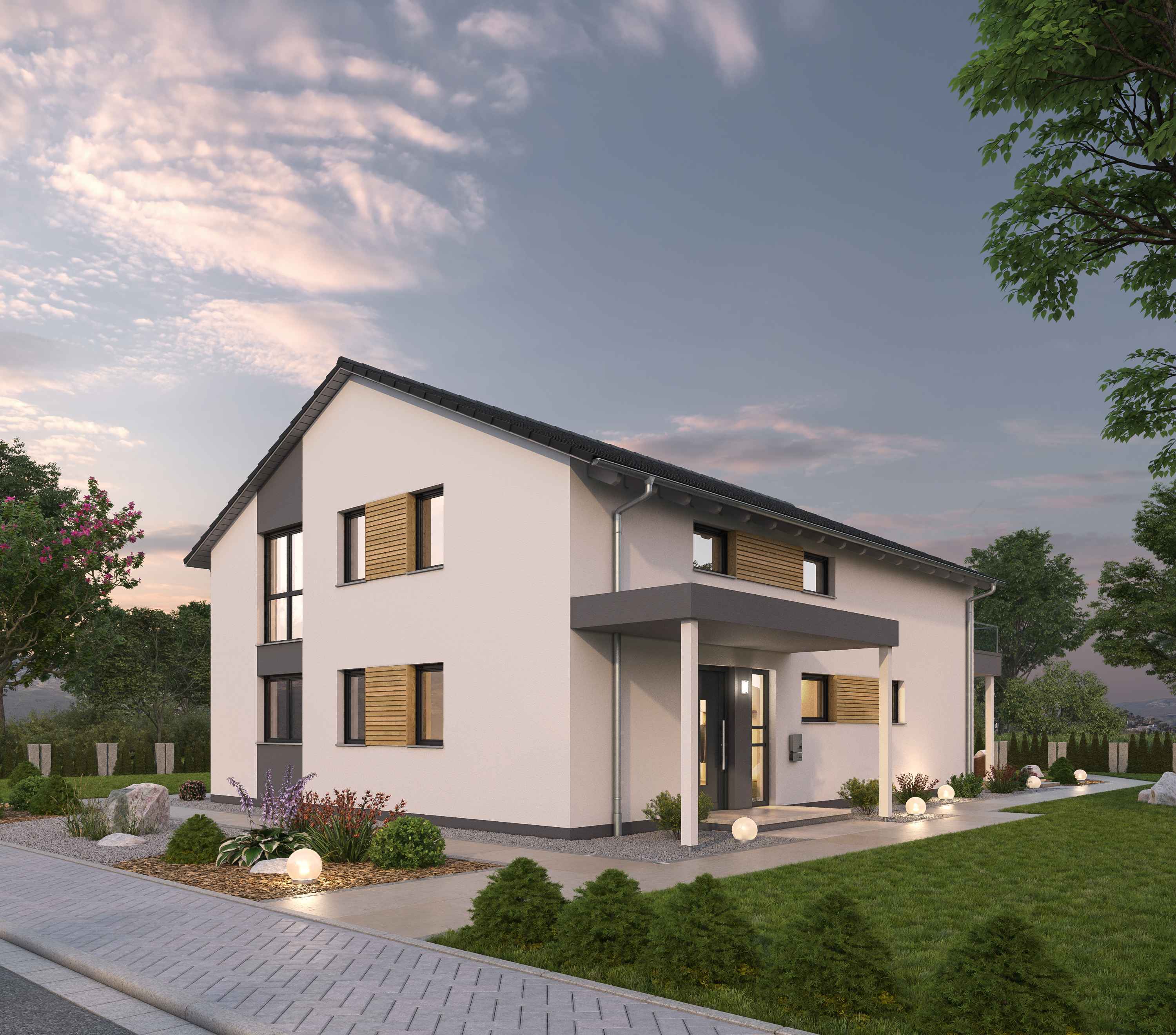 Von außen überzeugt das Zweifamilienhaus ZFH 244 durch seine freundliche Fassade. Die hölzernen Vorsprünge sehen nicht nur schick aus, sondern erweitern auf clevere Art und Weise das Platzangebot im Innern des Hauses.